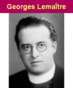 Lemaître dès 1927 établit que les solutions cosmologiques issues de la relativité générale sont en expansion, et qu’en conséquence les objets y présentent des vitesses d’éloignement proportionnelles à leurs distances. Après plusieurs années d’observations, Edwin Hubble établit la relation entre vitesse de récession (éloignement) et distance de plusieurs nébuleuses rebaptisées galaxies, prouvant ainsi l’expansion de l’Univers. Si cet astronome découvrit le phénomène brut, il resta perplexe quant à son interprétation.